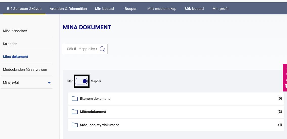 De mappar som kommer upp kan du ta del av gemensam information. Till höger kan du se hur många dokument som du kan ta del av. Klicka in på varje mapp för att ta del av information.